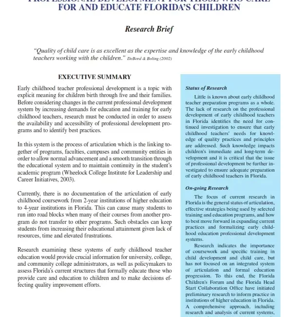 The authors examine the effects of documented quality indicators on the care and education of young children and the impact of high-quality interventions on child outcomes.